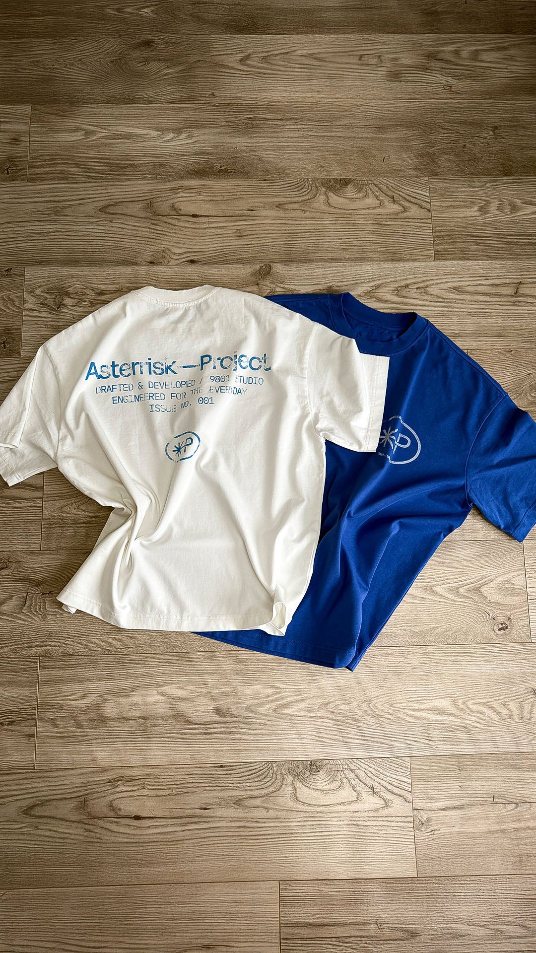 The First—Issue Tee sets the tone for everything to come. Boxy fit, double—distressed neckline, DTG graphics.